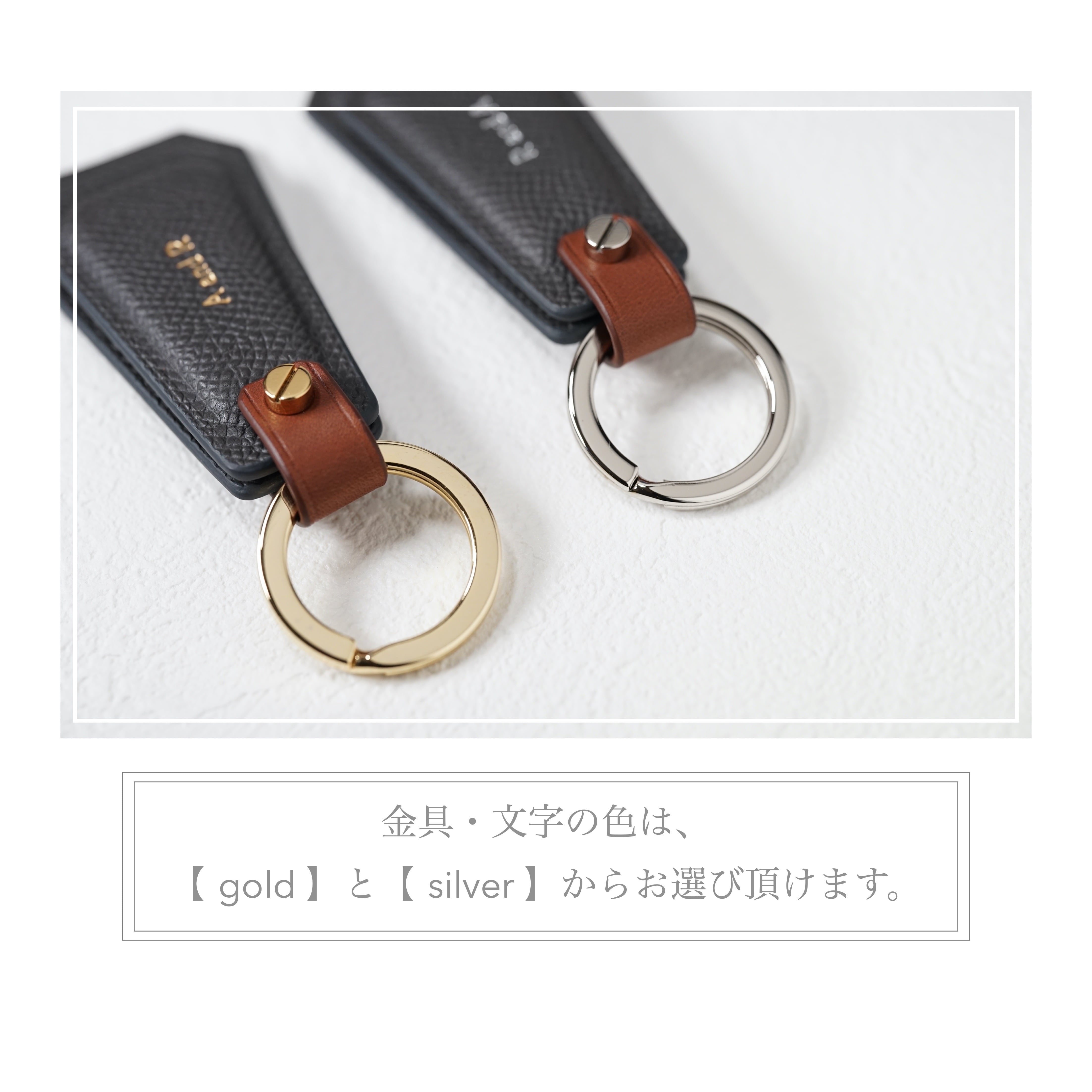 左右に揺れる立体的なレザーチャームが特徴的な、